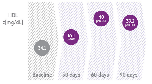 Regular Delphinol® intake rises high-density cholesterol (HDL).